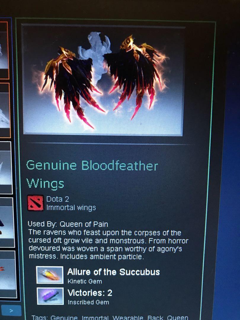 Dota 2 Queen Of Pain Mix Set Bloodfeather Wings Horns Of The Arch