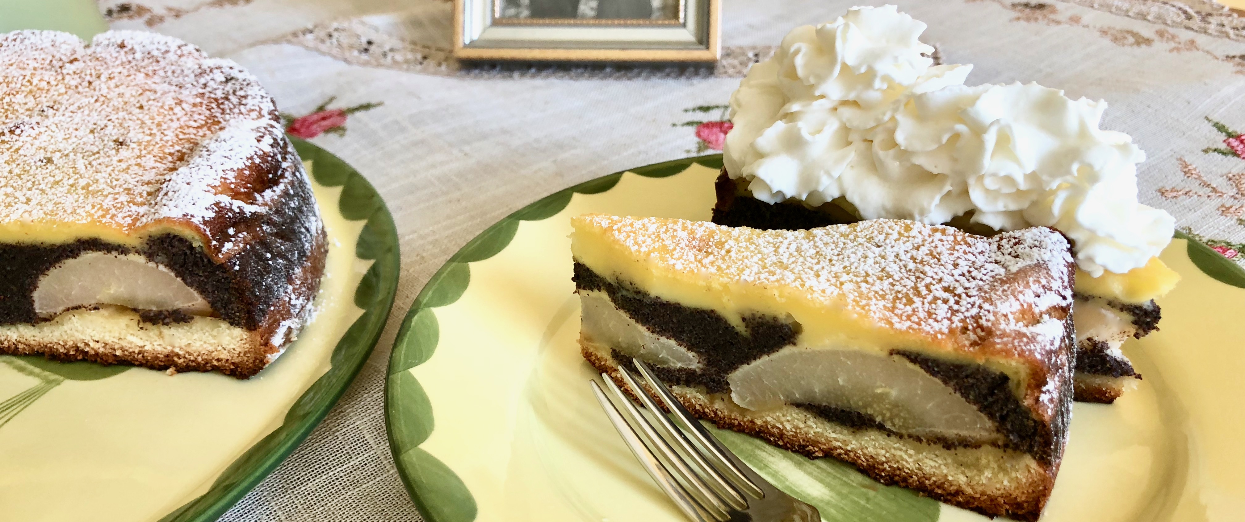 German Poppy Seed Cake Recipe Prepared With Pears And Cheese Topping